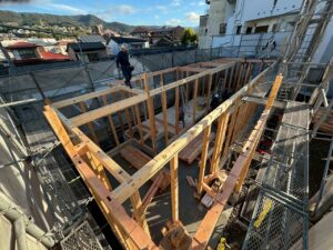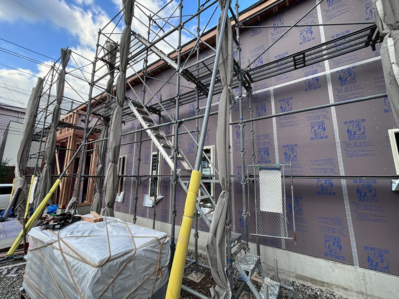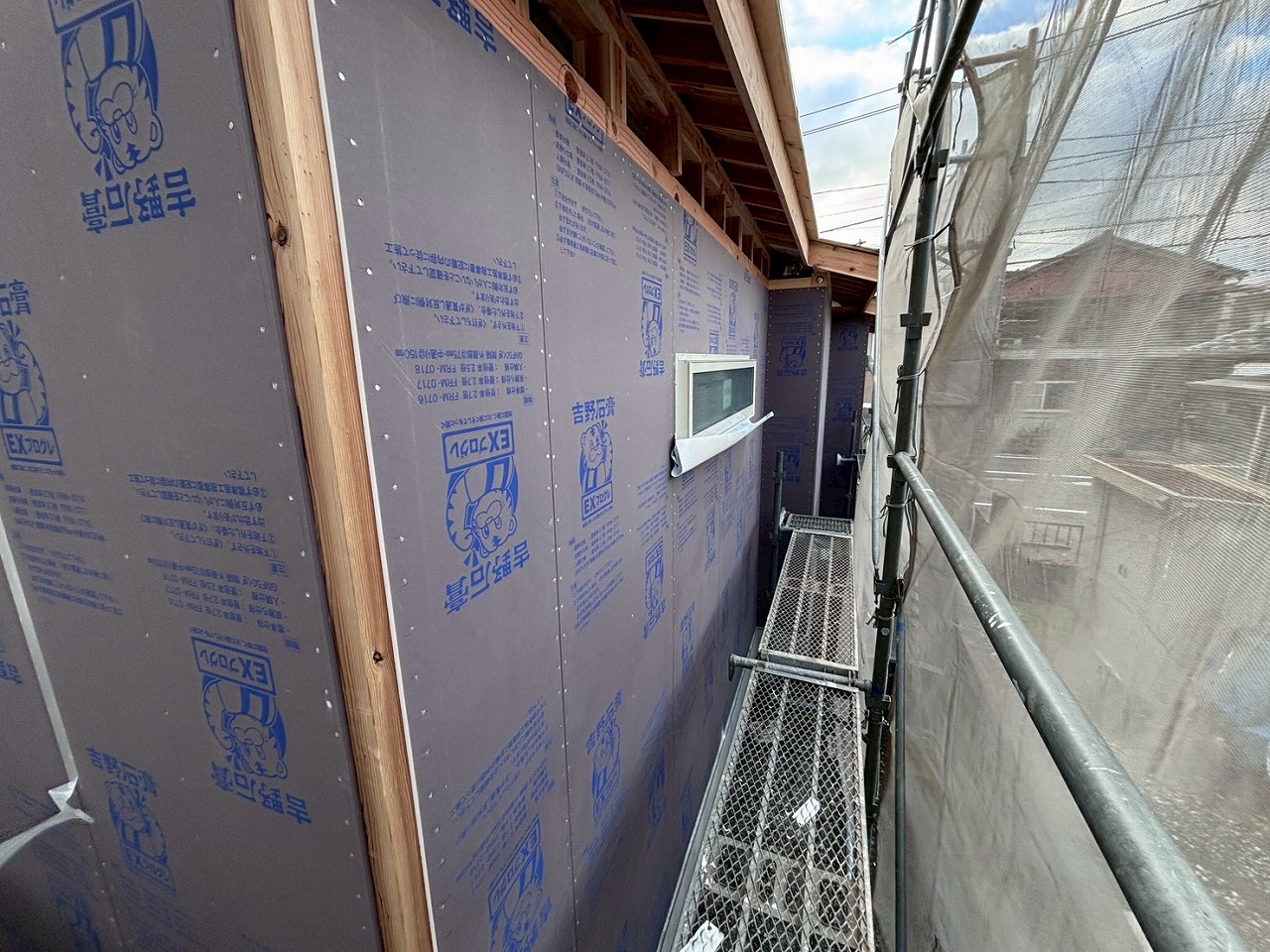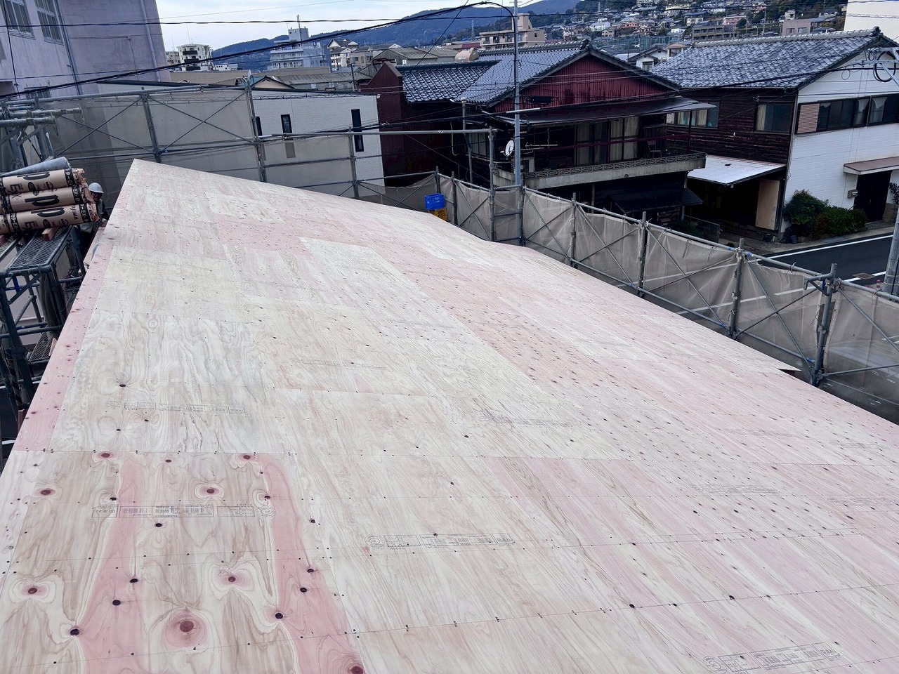 C様店舗 棟上げを行いました2025年12月27日 先日、瀬戸越4丁目 C様店舗の棟上げを行いました✨ 無事に棟上げが完了しました🏠 現在は耐震パネルの施工・サッシの取付を行ってます👷 来年も安全第一で工事を進めて参ります!