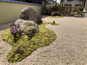 ご自宅にあった景石を使ってスナゴケで島模様に装い