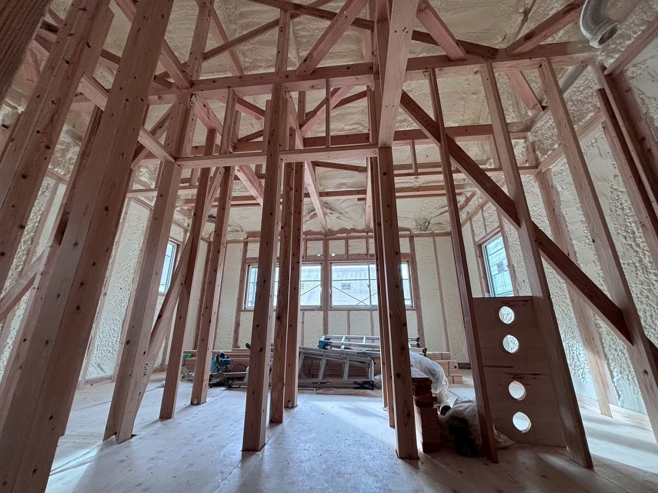Ya様邸 足場が取れました2026年2月13日 瀬戸越のYa様邸 新築工事の外部工事が完了し、足場が取れました🏠 断熱材はアクアフォームを採用しました☁ ここから内部仕上げ工事、外構工事に入っていきます! 完成をお楽しみに😊