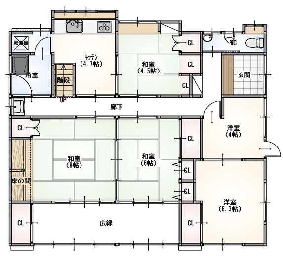 洋室6.3畳 洋室4畳 和室8畳 和室6畳 和室4.5畳 K4.7畳